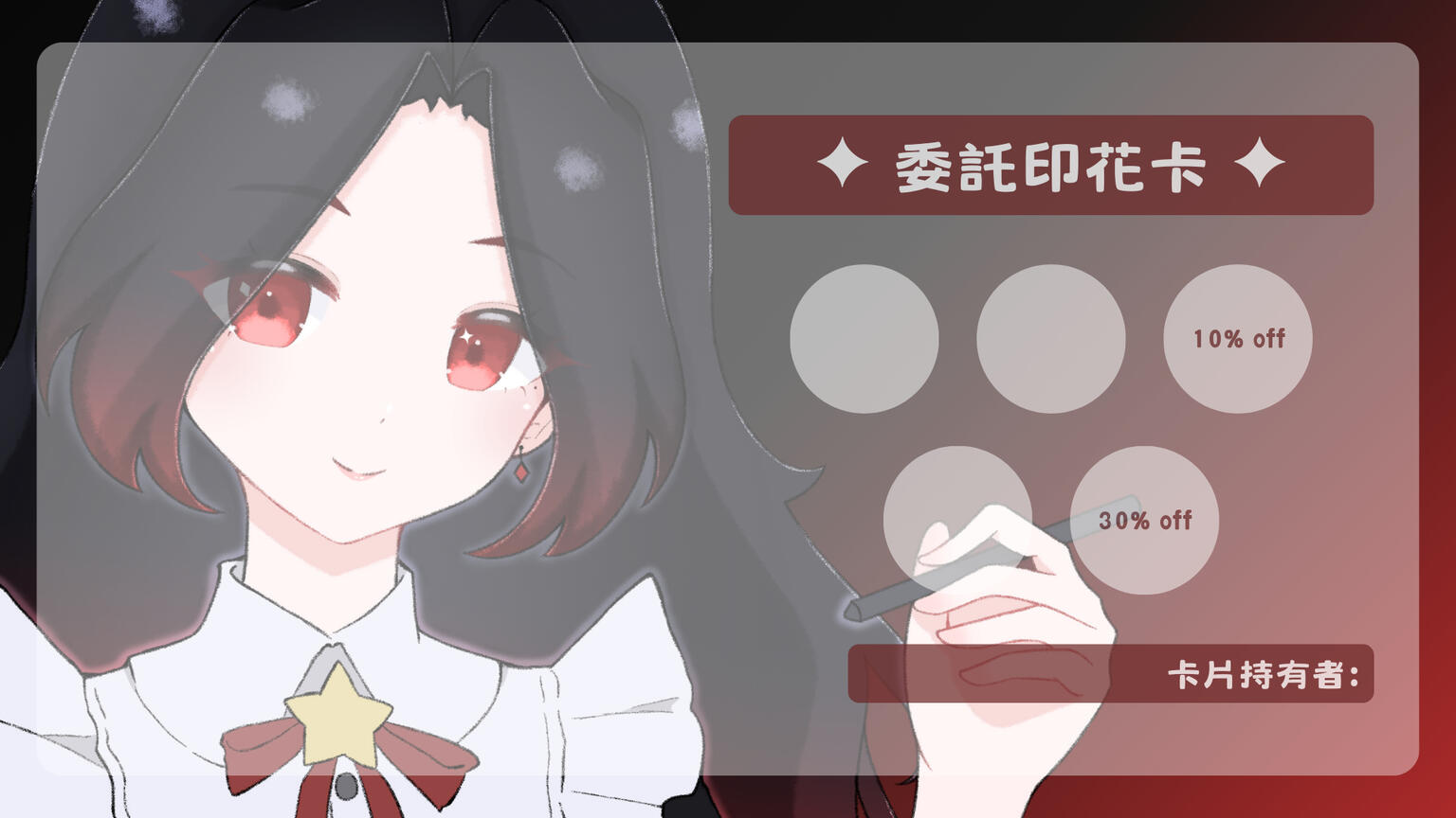 使用優惠後 下次委托會獲得一張新的印花卡過往委托過我的朋友們可以找我要印花卡